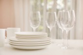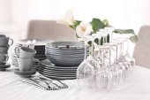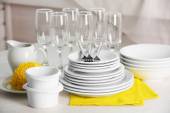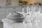 Zdjęcie "Stos czyste naczynia i szklanki na stole w kuchni" może być wykorzystywane do celów osobistych i komercyjnych zgodnie z warunkami zakupionej licencji Royalty-free. Obraz jest dostępny do pobrania w jakości wysokiej rozdzielczości do 5760x3840.