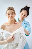 Młoda kobieta odbiera zabiegu depilacji laserowej w centrum urody