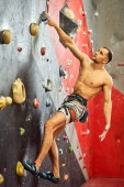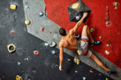 Panoramiczne ujęcie treningu dla młodych muskularnych mężczyzn w siłowni.