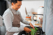 Zdjęcie "Ciemnowłosa chef pomiaru Sałatka przed podaniem go do klienta" może być wykorzystywane do celów osobistych i komercyjnych zgodnie z warunkami zakupionej licencji Royalty-free. Obraz jest dostępny do pobrania w jakości wysokiej rozdzielczości do 5760x3840.