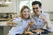 szczęśliwa para gotowania w kuchni