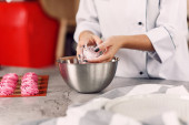 Zdjęcie "Kobiecej ręki rozlewa mąki na talerzu. Przygotowaniu Zefir." może być wykorzystywane do celów osobistych i komercyjnych zgodnie z warunkami zakupionej licencji Royalty-free. Obraz jest dostępny do pobrania w jakości wysokiej rozdzielczości do 5760x3840.