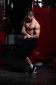 Portret młodego sprawnego fizycznie mężczyzny Pokazywanie dobrze wyszkolonego ciała - Muscular Athletic Bodybuilder Fitness Model pozowanie po ćwiczeniach
