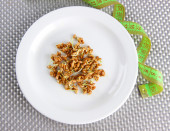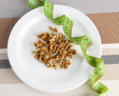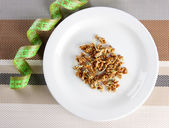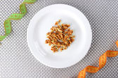 Kiełki pszenicy na płytkę i miarkę, z bliska