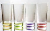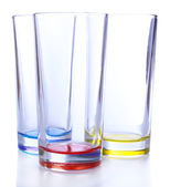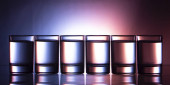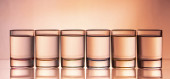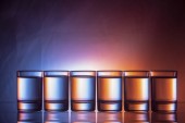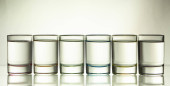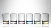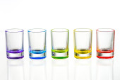 Sześć niewielkich kieliszkach kolorowy na białym tle z bliska