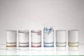 Sześć małych wielobarwne okulary na jasnym tle z bliska