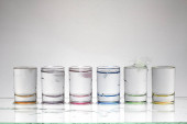 Zdjęcie "Sześć małych wielobarwne okulary na jasnym tle z bliska" może być wykorzystywane do celów osobistych i komercyjnych zgodnie z warunkami zakupionej licencji Royalty-free. Obraz jest dostępny do pobrania w jakości wysokiej rozdzielczości do 5760x3840.