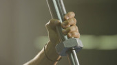Zdjęcie "Zbliżenie: Fryzjer odrobiny wody na włosy klientów w zwolnionym tempie. Ramki. Salon fryzjerski, rozpylanie wody i czesanie mokrych włosów. Męskie fryzury w salonie. Stylizacja włosów człowieka. Zbliżenie na strzyżenie Fryzjer. Fryzjer" może być wykorzystywane do celów osobistych i komercyjnych zgodnie z warunkami zakupionej licencji Royalty-free. Obraz jest dostępny do pobrania w jakości wysokiej rozdzielczości do 5760x3840.