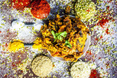 Zbliżenie na tradycyjne danie indyjskie vada z przyprawami