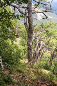Tak zwany Ogród Bogów w Parku Narodowym Pollino, gdzie mieszka sosna bośniacka lub Pinus Leucodermis, Basilicata, Włochy