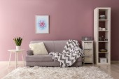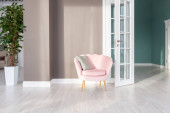 Wnętrze pokoju światło z wygodnym fotelem w pobliżu okna