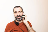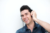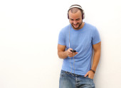 Zdjęcie "Po stronie portret szczęśliwy człowiek słuchanie muzyki z telefonu komórkowego i słuchawki" może być wykorzystywane do celów osobistych i komercyjnych zgodnie z warunkami zakupionej licencji Royalty-free. Obraz jest dostępny do pobrania w jakości wysokiej rozdzielczości do 5760x3840.