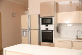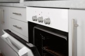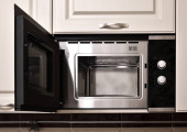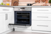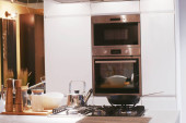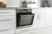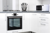 Nowoczesne połączenie piekarnik z kuchenką mikrofalową w kuchni światło
