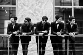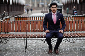 Młody człowiek indian na czarny garnitur i krawat stwarzane odkryty.