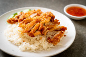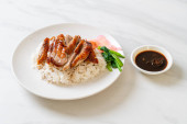 kurczaka z grilla z sosem teriyaki na szczycie rice bowl