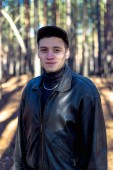 Zdjęcie "Młody facet z karnego wygląd w czarną skórzaną kurtkę stoi w pobliżu Starego van biały" może być wykorzystywane do celów osobistych i komercyjnych zgodnie z warunkami zakupionej licencji Royalty-free. Obraz jest dostępny do pobrania w jakości wysokiej rozdzielczości do 5760x3840.