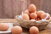 Zdjęcie "Kosz z surowego kurczaka jaj na drewnianym stole" może być wykorzystywane do celów osobistych i komercyjnych zgodnie z warunkami zakupionej licencji Royalty-free. Obraz jest dostępny do pobrania w jakości wysokiej rozdzielczości do 5760x3840.