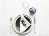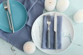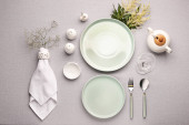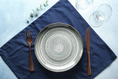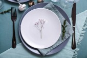 Świąteczny stół ustawienie z bawełny kwiaty na ciemnym tle