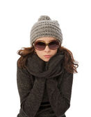 piękna blondynka na białym tle