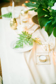Prezenty i pudełka pod choinką. Beżowe pudełka ze wstążką. Nowy rok urządzone wnętrze domu. Koncepcja Winter Holiday