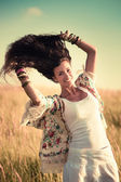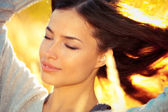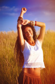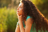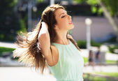 uśmiechający się piękne miasto młoda kobieta portret cieszyć się w zachód słońca summer