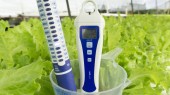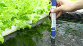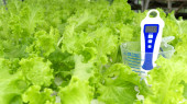 Warzywa świeże sałaty rośnie w podłoże hydroponicznych ogród farm, z miejsca kopiowania tekstu, z bliska.