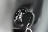 Zapłonu klucza nowoczesny samochód z bliska. Atv kluczyk w dziurkę od klucza