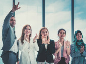 Działalności zespołu jest klaskanie przyklasnąć dla udane spotkanie
