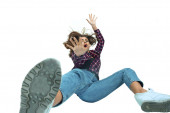dama dziewczynka jeden kaukaski młody nastolatek odtwarzanie badmintonista, izolowana na białym tle