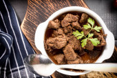 Zdjęcie "Jedzenie koncepcja domu mięso pikantny gulasz z patelni żeliwna patelni z miejsca kopii" może być wykorzystywane do celów osobistych i komercyjnych zgodnie z warunkami zakupionej licencji Royalty-free. Obraz jest dostępny do pobrania w jakości wysokiej rozdzielczości do 5760x3840.