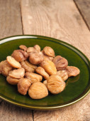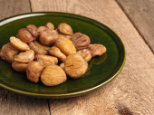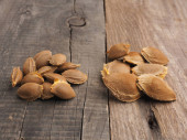 Ekologiczne orzechy włoskie francuski drewniane miski na tle białego studia