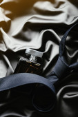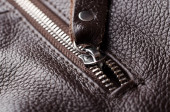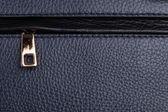Tło na zamek błyskawiczny. Rozpakowany czarny skórzany worek zbliżenie.