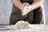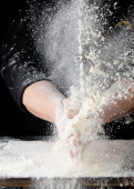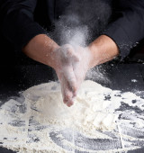 Zdjęcie "Mąka pszenna biała na czarny drewniany stół i kucharz przygotować Zagnieść ciasto" może być wykorzystywane do celów osobistych i komercyjnych zgodnie z warunkami zakupionej licencji Royalty-free. Obraz jest dostępny do pobrania w jakości wysokiej rozdzielczości do 5760x3840.