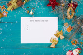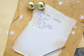 Wigilię Bożego Narodzenia, lista rzeczy do zrobienia. Przedstawia na tle nowego roku. Widok z góry