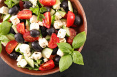 Zdjęcie "Widok z góry Sałatka mieszane warzywa do miski" może być wykorzystywane do celów osobistych i komercyjnych zgodnie z warunkami zakupionej licencji Royalty-free. Obraz jest dostępny do pobrania w jakości wysokiej rozdzielczości do 5760x3840.