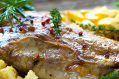 Zdjęcie "Uroczysty żywności. Pieczonego kurczaka faszerowane szynką i pieczarkami. Serwowane pyszne kurczaka nadziewane na uroczysty obiad na stole." może być wykorzystywane do celów osobistych i komercyjnych zgodnie z warunkami zakupionej licencji Royalty-free. Obraz jest dostępny do pobrania w jakości wysokiej rozdzielczości do 5760x3840.