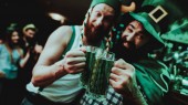 Zdjęcie "Black Brodaty mężczyzna z firmy. St Patrick's Day. Bar licznika. Obsługa alkoholu. Uśmiechający się nastolatków. Dobry nastrój Świąteczny. Jasne światła. Odwiedzający śmieszne Club. Świętujemy razem. Noc stroną." może być wykorzystywane do celów osobistych i komercyjnych zgodnie z warunkami zakupionej licencji Royalty-free. Obraz jest dostępny do pobrania w jakości wysokiej rozdzielczości do 5760x3840.