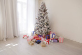 White Christmas tree prezenty i ozdoby świateł girlanda nowy rok