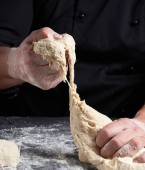 Zdjęcie "Mąka pszenna biała okrągłe ciasto i drewnianym wałkiem w męskie ręce" może być wykorzystywane do celów osobistych i komercyjnych zgodnie z warunkami zakupionej licencji Royalty-free. Obraz jest dostępny do pobrania w jakości wysokiej rozdzielczości do 5760x3840.