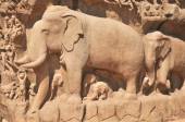 Chennai, Tamilnadu - Indie - 09 września 2018: Słonie opoka w Mamallapuram