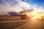 Zdjęcie "Ciężarówki i biały przyczepy i samochody na drodze wsi przeciwko Niebo Zachód słońca" może być wykorzystywane do celów osobistych i komercyjnych zgodnie z warunkami zakupionej licencji Royalty-free. Obraz jest dostępny do pobrania w jakości wysokiej rozdzielczości do 5760x3840.