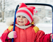 piękny szczęśliwy dziecko w czerwony ciepłej odzieży