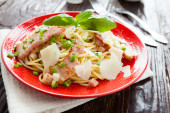 Zdjęcie "spaghetti z smażone szynka i serem" może być wykorzystywane do celów osobistych i komercyjnych zgodnie z warunkami zakupionej licencji Royalty-free. Obraz jest dostępny do pobrania w jakości wysokiej rozdzielczości do 5760x3840.