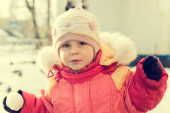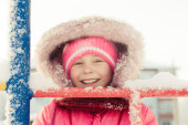 piękne dziecko szczęśliwe w czerwonej kurtce