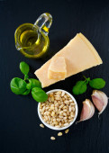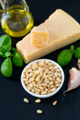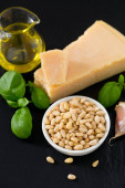 Zdjęcie "składniki pesto na ciemnej powierzchni" może być wykorzystywane do celów osobistych i komercyjnych zgodnie z warunkami zakupionej licencji Royalty-free. Obraz jest dostępny do pobrania w jakości wysokiej rozdzielczości do 5760x3840.