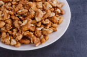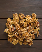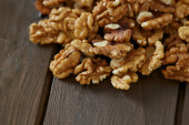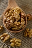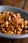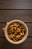 orzechy włoskie w misce na powierzchni drewnianych