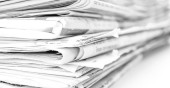 Stos gazet i czasopism z częściowo wyświetlane nagłówki i artykuły jako koncepcja dla tła naciśnij wiadomości lub mediów