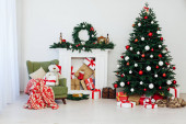 Choinka Garland światła prezenty na nowy rok wakacje biały wystrój domu