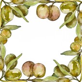 Ramki z zestawem ilustracji tle akwarela zielone oliwki. Akwarela rysunku aquarelle moda na białym tle.