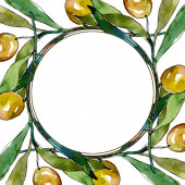 Zielone oliwki zestaw ilustracji tle akwarela. Akwarela rysunku aquarelle moda na białym tle. Obramowanie ramki